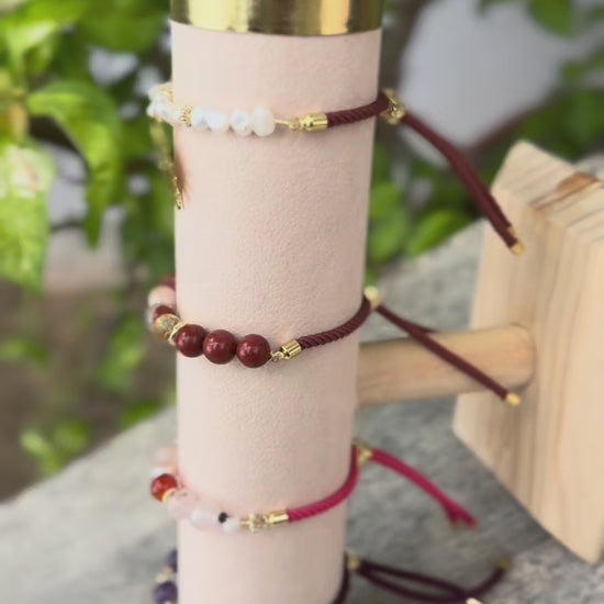 Jasper rojo: Una gema roja que transmite elegancia y simboliza la actitud frente al cambio y conexión con el presente.